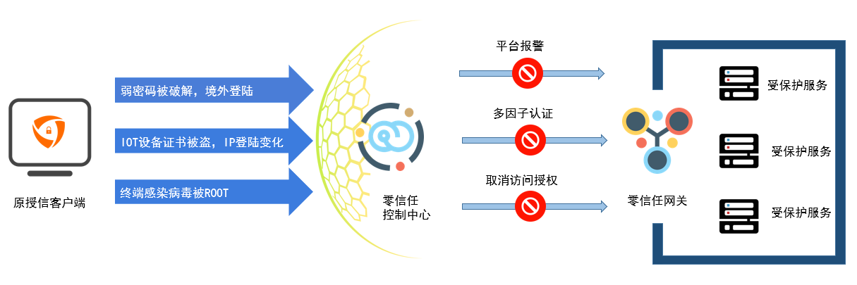 云涌零信任可以保護邊緣計算設備的身份安全與數據安全,使每個邊緣網關成為獨立的安全區段,網關內業務服務受零信任平臺保護。