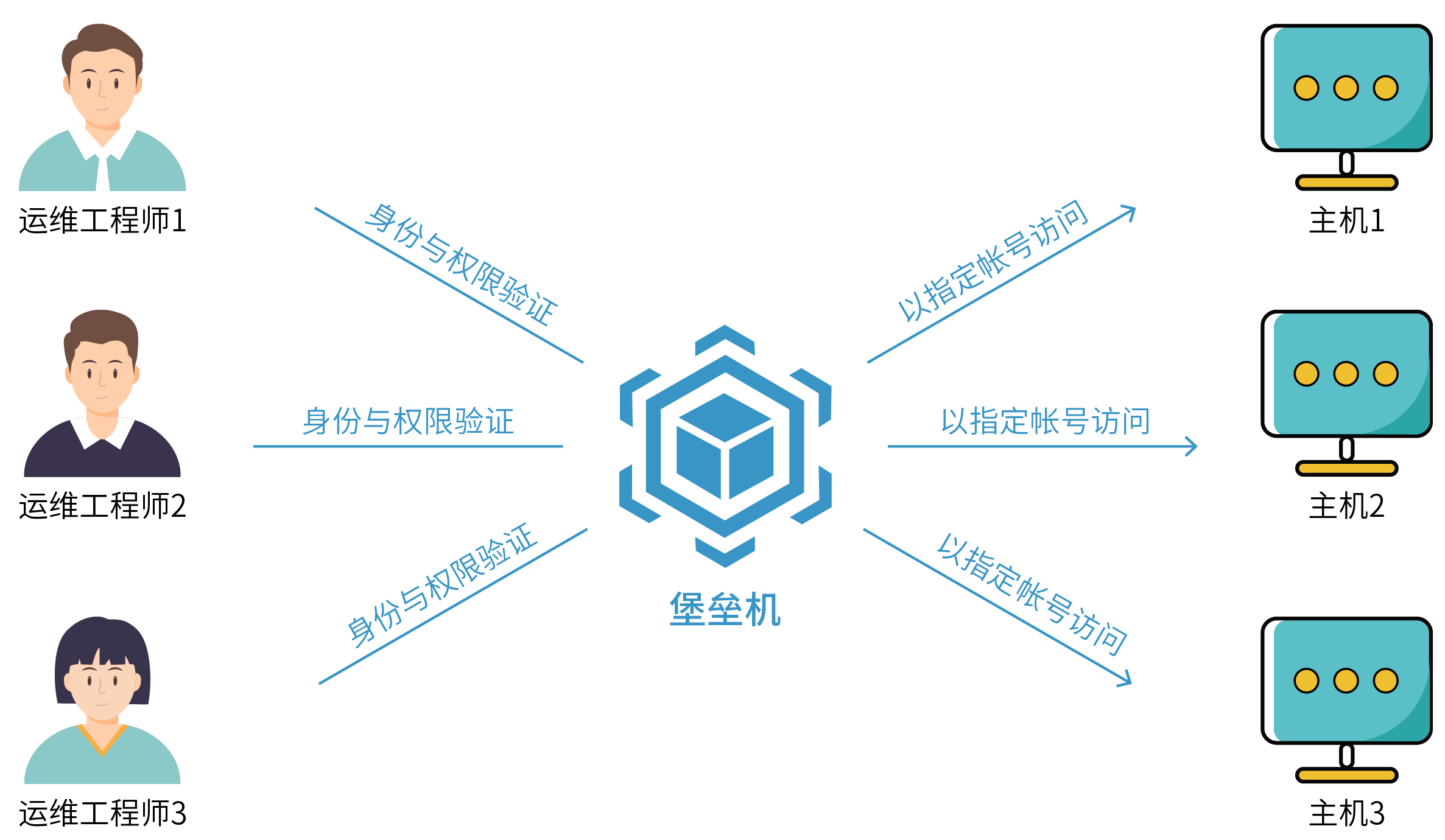 一方面堡壘機可通過遠程運維,隱藏資產的真實地址,解決資產信息暴露問題,另一方面通過提供多賬號統一運維收口和權限細粒度劃分管理,實現便捷運維和靈活規范化管理,最后通過提供全面的運維日志,對整個運維過程,包括人員操作行為提供有效監控,得以保證互聯網企業在不斷發展過程中的持續穩定。