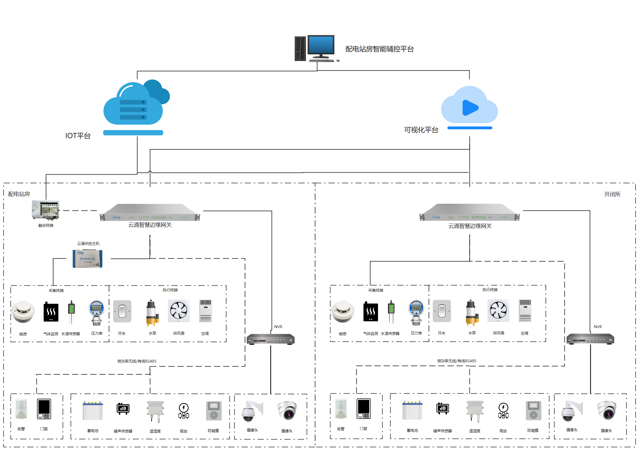 云涌智慧邊緣物聯(lián)網(wǎng)關(guān)是整個系統(tǒng)的中樞部分,不僅可以在站內(nèi)進(jìn)行實時數(shù)據(jù)的采集上傳,還能通過連接采控主機,實時接收站房環(huán)境的數(shù)據(jù)信息,同時對于接收到的設(shè)備狀態(tài)、安防信息、視頻監(jiān)控等監(jiān)測數(shù)據(jù),及時上傳到IoT平臺和可視化平臺,最終對配電站房內(nèi)各功能模塊的信息進(jìn)行存儲、處理及分析,通過標(biāo)準(zhǔn)協(xié)議傳輸給配電站房輔助監(jiān)控平臺。此外,邊緣物聯(lián)網(wǎng)關(guān)還可以及時接收平臺發(fā)布的智慧控制調(diào)節(jié)命令,通過啟停相關(guān)設(shè)備來進(jìn)行環(huán)境調(diào)節(jié),并同時反饋執(zhí)行情況,設(shè)備傳感器實時采集信息反饋,平臺根據(jù)設(shè)備傳感器實時采集到的信息反饋,對調(diào)節(jié)結(jié)果進(jìn)行再判斷,可實現(xiàn)不斷循環(huán)優(yōu)化。