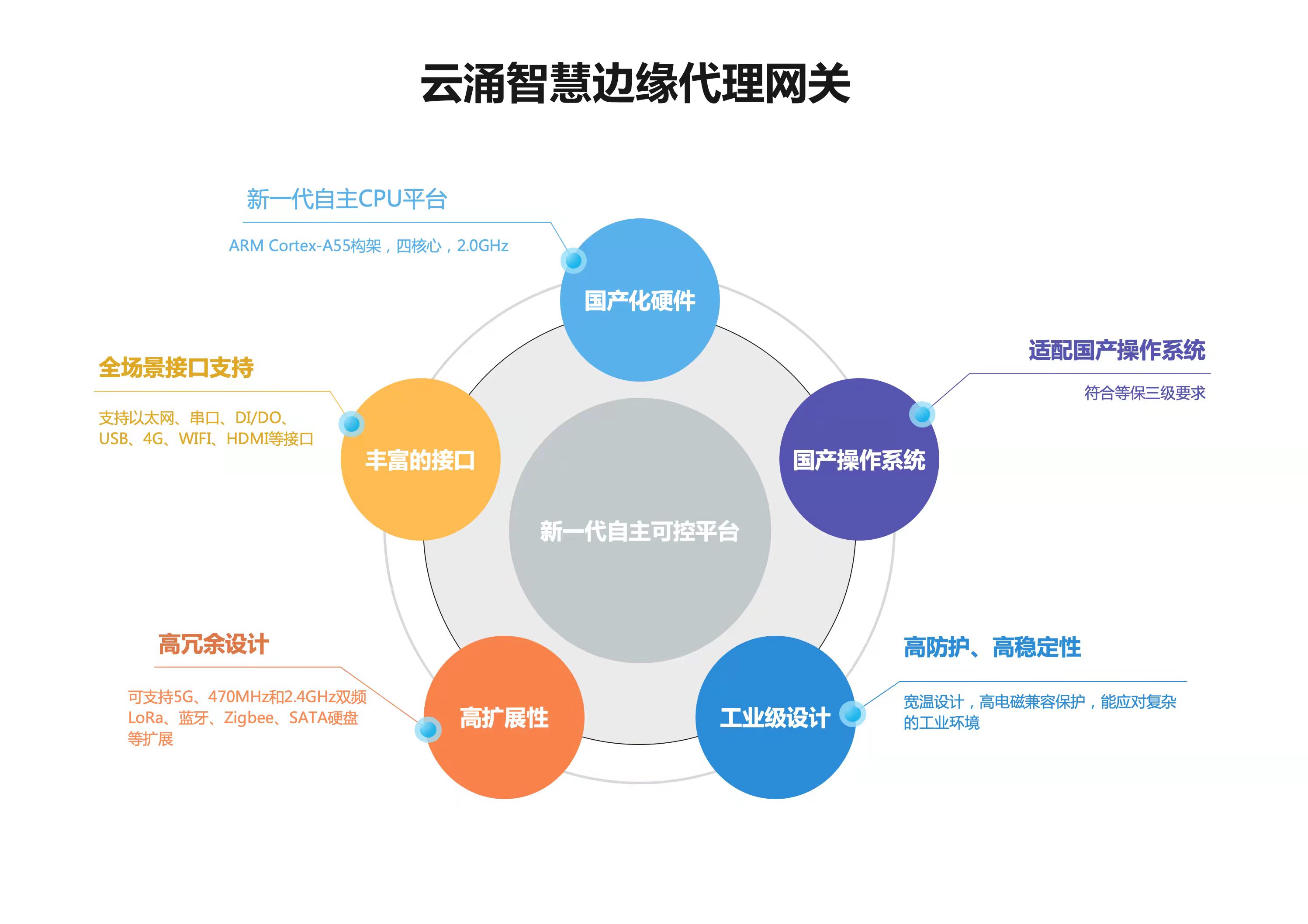 當(dāng)今時代,隨著網(wǎng)絡(luò)信息數(shù)據(jù)量的大幅度提升以及5G技術(shù)的迅速發(fā)展,為更有效地處理實時數(shù)據(jù),基于5G的邊緣計算技術(shù)應(yīng)運而生,且有著廣闊的應(yīng)用前景。而邊緣代理網(wǎng)關(guān)作為數(shù)據(jù)傳輸?shù)年P(guān)鍵設(shè)備,發(fā)揮著協(xié)議轉(zhuǎn)換和數(shù)據(jù)處理的重要作用,為更好地適應(yīng)復(fù)雜惡劣的工業(yè)環(huán)境,保證現(xiàn)場通訊的穩(wěn)定安全,云涌科技推出新一代智慧邊緣代理網(wǎng)關(guān)。