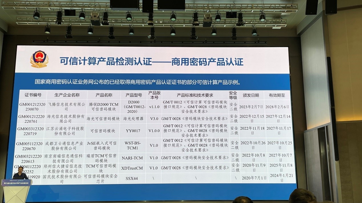 云涌科技副總裁高淵先生全程參與本次論壇會議,并作為企業代表上臺領獎。云涌可信密碼模塊YY0017作為已取得商用密碼產品認證證書的可信計算產品示例在會議現場被提及,并獲得了現場領導和專家們的一致肯定。