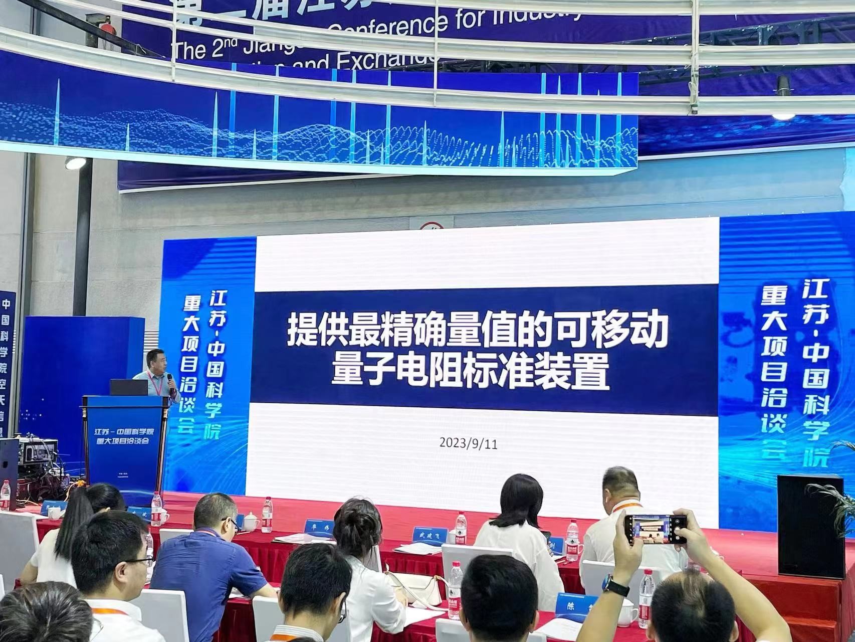 在江蘇——中國科學院重大項目洽談會的路演中,王浩敏研究員發表了題為《提供最精確量值的可移動量子電阻標準裝置》的演講,他表示量子電阻標準支撐了整個科學和工業測量參比體系,在電子信息、航空航天、醫療以及國防等領域有著廣泛的用途。量子電阻是可以直接測量且只與自然常數相關的宏觀電學物理量。目前,中、美、日等國家級計量實驗室均建成了量子霍爾電阻標準裝置(QHRS),并在進行推廣,我國也正在開展針對用于新一代量子電阻的芯片技術研發。QHRS的研制將帶來電學測量原理、方法和儀器形態的全面創新,并形成獨特的材料與設備產業,從而對信息產業結構產生巨大影響。