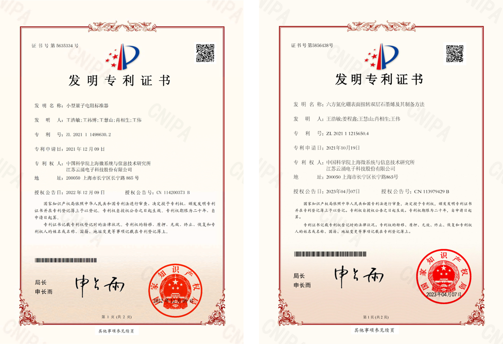 公司自2019年開始,與中國科學院上海微系統與信息技術研究所建立了產學研合作關系,推動最新科技成果轉化,賦能創新產業發展。其中開展了關于量子電阻標準模塊研發和量子電阻標準原型機研發的項目,其中標準模塊的研發已經完成,原型機的研發還在有序進行中。截止到目前,雙方共同申請了4項發明專利,其中已有2項獲得授權證書。